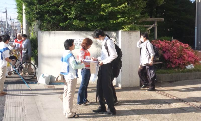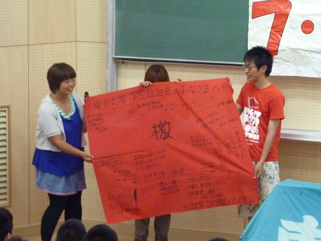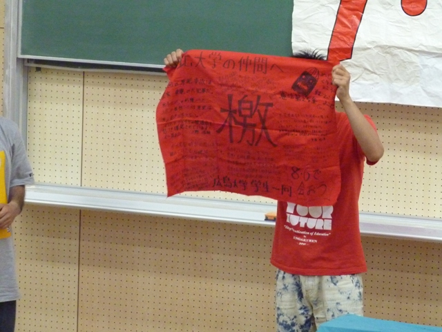 法政大と広島大の仲間から学生自治会に檄布が手渡されました。法政大では門前で学生に書いてもらったそうです。