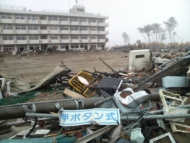 かろうじて残った校門には「仙台市立荒浜小学校」の表記。校庭の奥にある校舎は、1階部分は車が突っ込んだり、がれきが散乱したり、窓ガラスが割れたりしているが、2階から上はあまり損傷ないように見え、全体としてはしっかり残っているような感じである。校舎の隣にある体育館は激しく破壊されている。荒浜地区と言えば、津波発生後、200~300もの遺体が確認されたものの、何日もの間、水が引かなかったり、がれきがあるという理由で遺体がそのままにされていた地区であることは知っていた。一体なにがあったのか。思いをめぐらせながら、校門を堰き止めるように積もっているがれきを乗り越えて、校舎の方へ歩いていく。