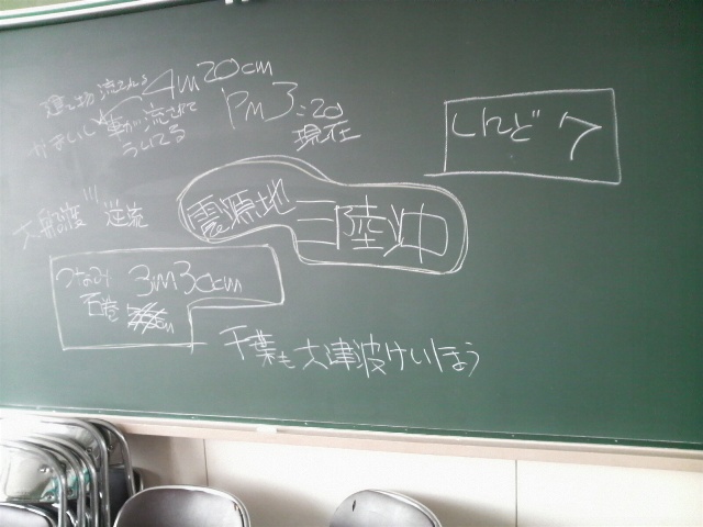 千葉も大津波けいほう」と黒板に書かれている。