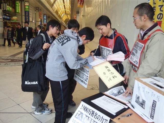 とりわけ、石巻市や東松島市で家族や住まいを津波によって失った人、福島の南相馬市から避難を余儀なくされた人が「絶対に許せない!」「この署名を東電に絶対届けてくれ!」「がんばってほしい」と怒りの声を上げています。また、労組交流センター会員が働いている職場の同僚の青年が「Aさんがいつもチラシを配っているのを知っています」と署名に応じてくれました。