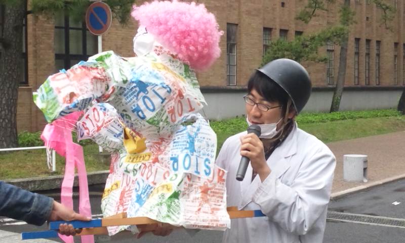 東北大学学生自治会の石田委員長から、「大学こそが原発を進めてきた張本人。いまも研究室にこもって安全だと言っている。こんな大学は変えなければならない。今日は全世界100万人がデモに立ち上がる日。来週は福島現地で政府・東電資本に怒りの声をあげよう」とアピール!