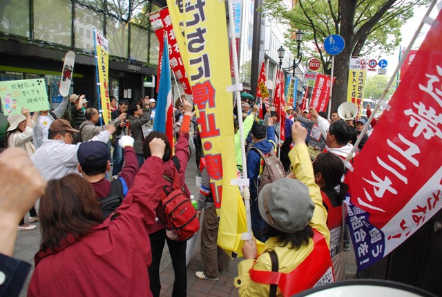 すべての原発をいますぐ停止・廃止させなければなりません。爆発した福島第一原発からは、いまなお大量の放射性物質が陸に、海に、空にと垂れ流されています。半径20キロ圏内は住民を強制排除し、立ち入ることすら許されていません。福島県内の小中学校では、多くの放射性物質が降り注ぐなかで、子どもたちは被曝の危険にさらされながら、教室の窓を開けることも、校庭で活動することもできません。農作物は出荷停止、作付け禁止においこまれ、悔しさと怒りを胸に秘めて抗議の自殺をはかる農民もでています。福島の労働者・農民・漁民からは「私たちはモルモットではない!」「見殺しにする気か!」という怒りの声が上がっています。